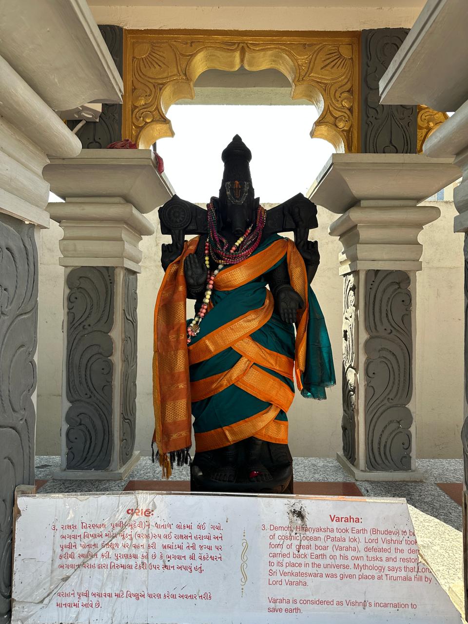 Varaha is the third avatar (incarnation) of Lord Vishnu, one of the principal deities of Hinduism. The word ‘Varaha’ means ‘boar’ in Sanskrit. This avatar represents the divine power of Vishnu to protect the universe and restore cosmic order (Dharma).